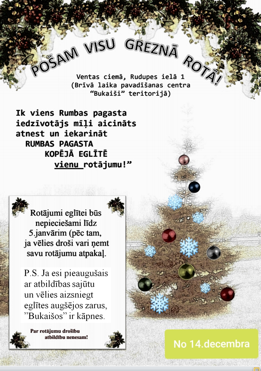 18.decembrī no rīta līdz pusdienas laikam pie Rumbas pagasta visjaunāko iedzīvotāju (bērniem, kuri vēl nav uzsākuši gaitas pirmsskolas izglītības iestādēs) namdurvīm ieradīsies RUMBAS PAGASTA Ziemassvētku vecītis!