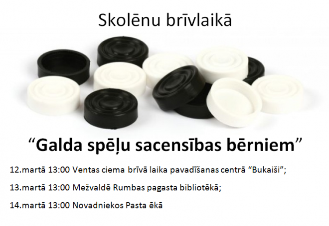 Skolēnu brīvlaikā “Galda spēļu sacensības bērniem”