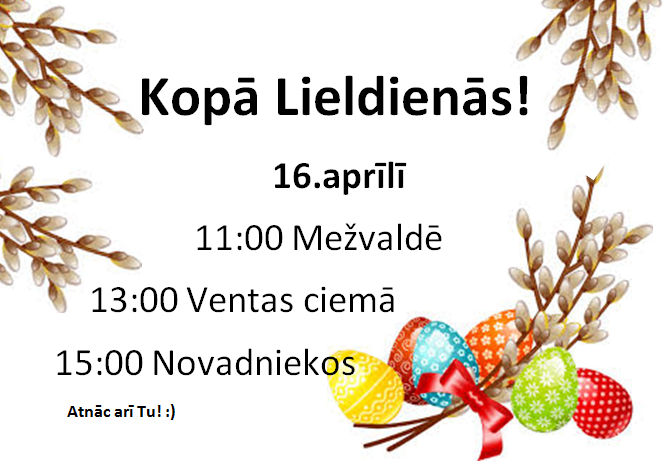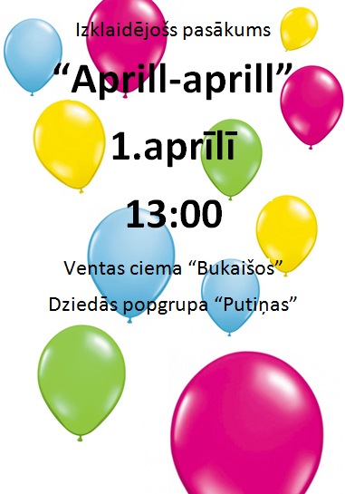 5.aprīlī Ventas ciema “Bukaišos” 14:15 kulinārijas pasākums Gardēži Pēc interesantām receptēm gatavojam ēdienu, un to degustējam!! Dalības maksa 1-1,5 EURO (atkarībā no dalībnieku skaita un receptes sastāvdaļu izmaksām). Sīkākai informācijai zvanīt uz nr.20251385 Nāc un piedalies!