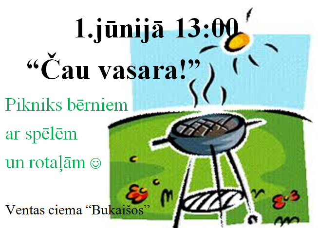 3.maijā Ventas ciema “Bukaišos” 14:15 kulinārijas pasākums Gardēži Pēc interesantām receptēm gatavojam ēdienu, un to degustējam!! Dalības maksa 1-1,5 EURO (atkarībā no dalībnieku skaita un receptes sastāvdaļu izmaksām). Sīkākai informācijai zvanīt uz nr.20251385 Nāc un piedalies!