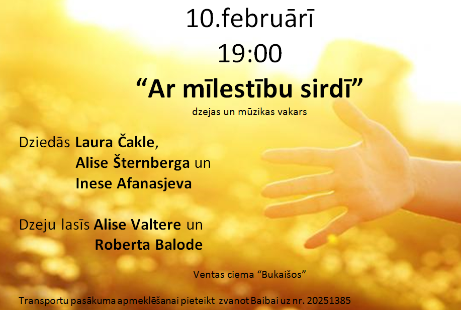 21.martā11:00 Rumbas pagasta bibliotēkā, 18:00 Ventas ciemā “Bukaišos” RADOŠĀ DARBNĪCA.