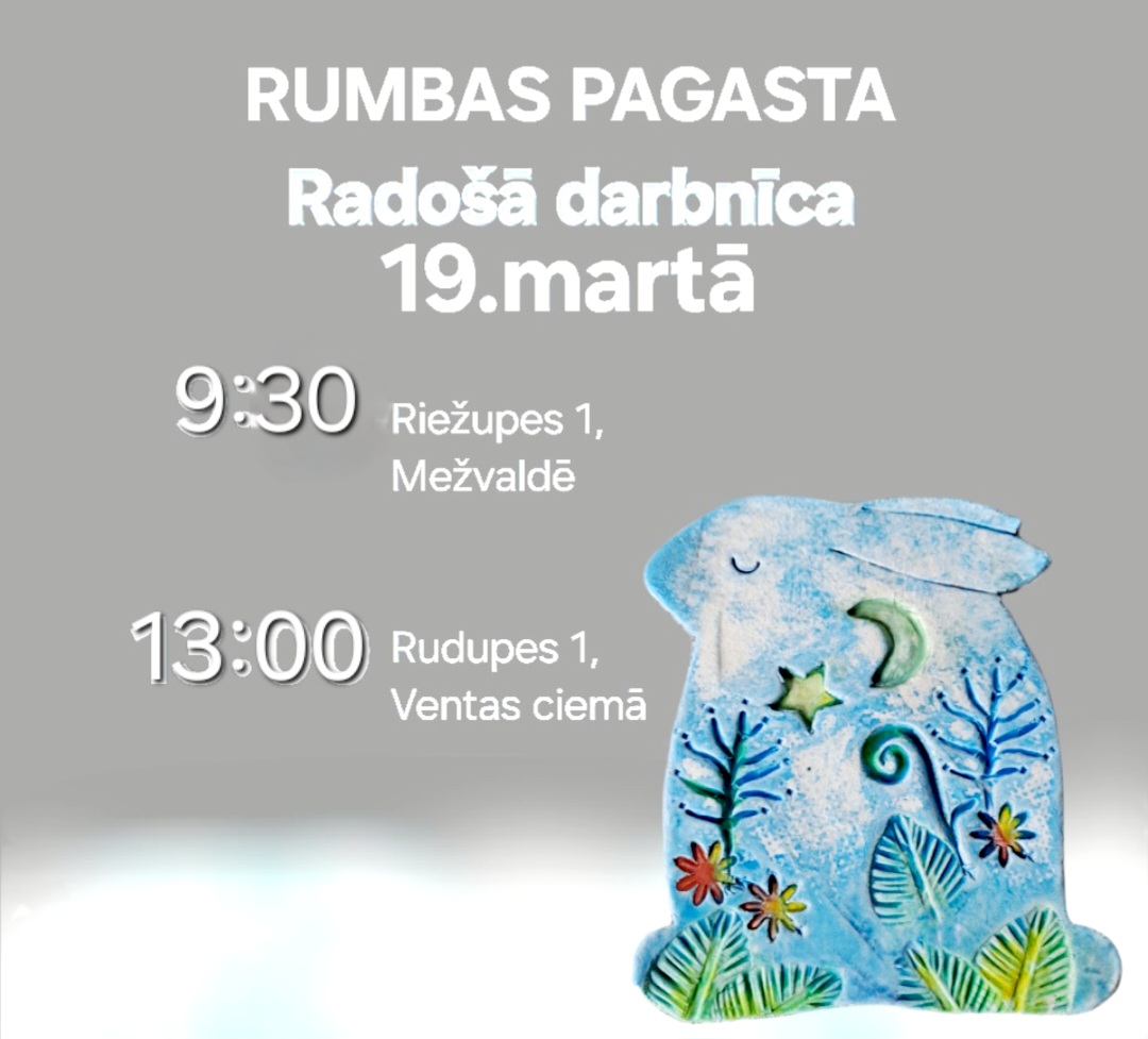 21.maijā 9:30 Rmbas pagasta bibliotēkā (Mežvalde, Riežupes 1) un 13:00 Ventas ciema “Bukaišos” (Rudupes 1).