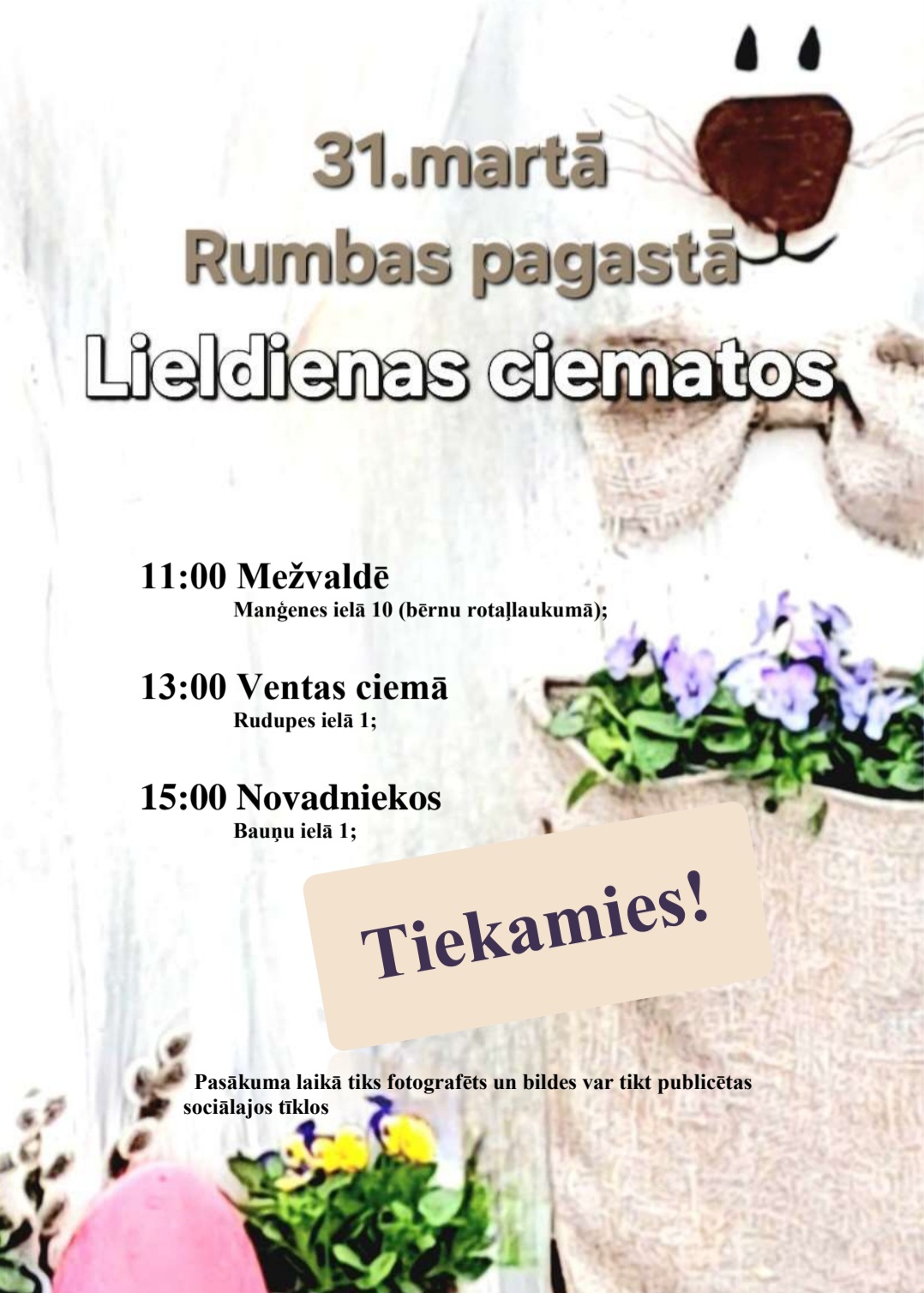 11:00 Mežvaldē, 13:00 Ventas ciemā, 15:00 Novadniekos