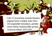 2.februārī Rumbas pagastā, Ventas ciema brīvā laika pavadīšanas centrā “Bukaiši” 10:15 “Radošā darbnīca”. Izgatavojam dažādas skaistumlietiņas: rotas, brošas, interjera dekorus u.c. skaitas lietas! Nepieciešamie materiāli ir uz vietas. Nodarbības ir bezmaksas!!! NĀC UN IZGATAVO ARĪ TU! Obligāta iepriekšēja pieteikšanās zvanot uz nr 20251385 – vietu skaits ierobežots! Dalībniekiem jāuzrāda derīgs Covid-19 sertifikāts, kas apliecina pabeigtas… Continue reading »