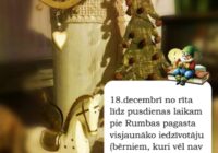 18.decembrī no rīta līdz pusdienas laikam pie Rumbas pagasta visjaunāko iedzīvotāju (bērniem, kuri vēl nav uzsākuši gaitas pirmsskolas izglītības iestādēs) namdurvīm ieradīsies RUMBAS PAGASTA Ziemassvētku vecītis! Iepriekš konkrētajiem bērniem tiks nosūtīta vēstule ar apstiprinājuma informāciju! Neskaidrību gadījumā zvaniet 20251385