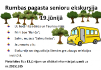 19.jūnijā Rumbas pagasta senioru ekskursija uz LU botānikas dārzu un Tauriņu māju, mini Zoo “Rančo”, salmu muzeju “Salmu lietas”, Jaunmoku pili un ekskursija un degustācija Stendes graudaugu selekcijas institūtā. Pieteikties (no 1.jūnija līdz 13.jūnijam) un sīkākai informācijai, zvanīt uz nr.20251385